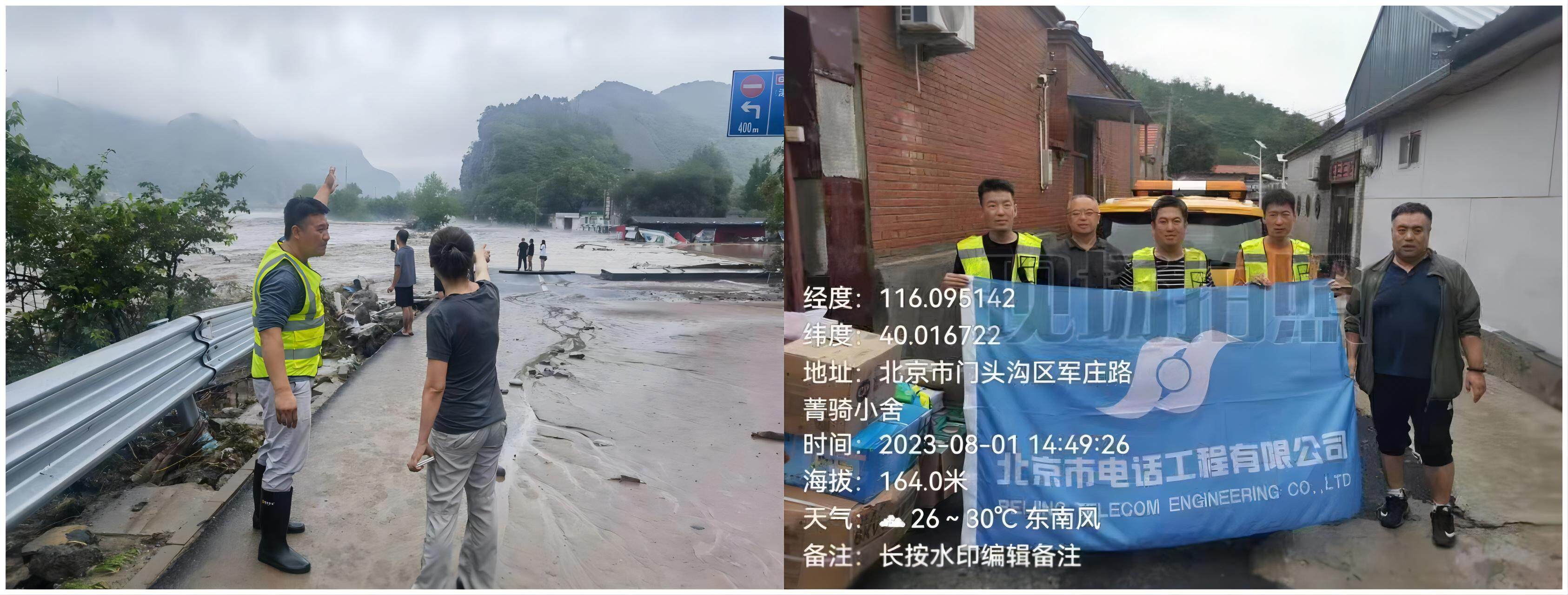 7月31日,受臺風“杜蘇芮”帶來的強降雨影響,北京房山、門頭溝地區汛情嚴重,造成房山、門頭溝等區域大量通信基站出現斷電退服情況。北京市電話工程有限公司作為一家通信建設、維護服務企業,在市通信管理局及四大運營商的號召下,積極履行企業責任、社會責任,迅速響應,在做好原有區域維護搶修工作的基礎上,緊急調配、積極組織13支隊伍共計30人分別趕赴房山、門頭溝等區域進行支援,全力做好防汛應急通信保障工作。