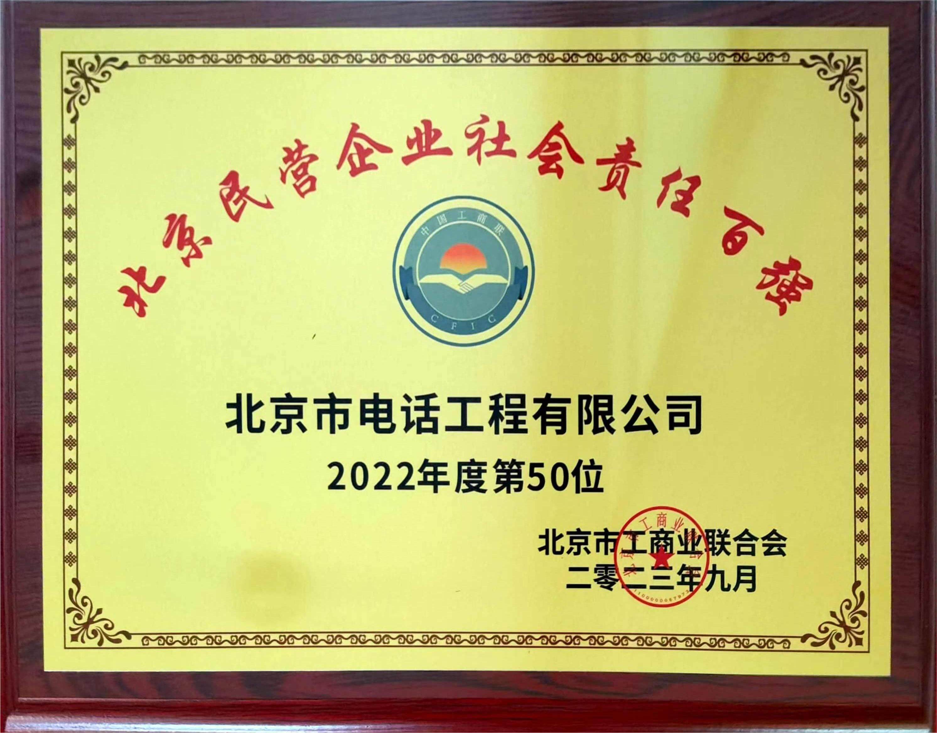 9月21日,北京市工商聯、北京市豐臺區人民政府聯合召開2023北京民營企業百強發布會,會上發布了北京民營企業“1+4”百強榜單。北京市電話工程有限公司榮登“北京民營企業社會責任百強”榜單。