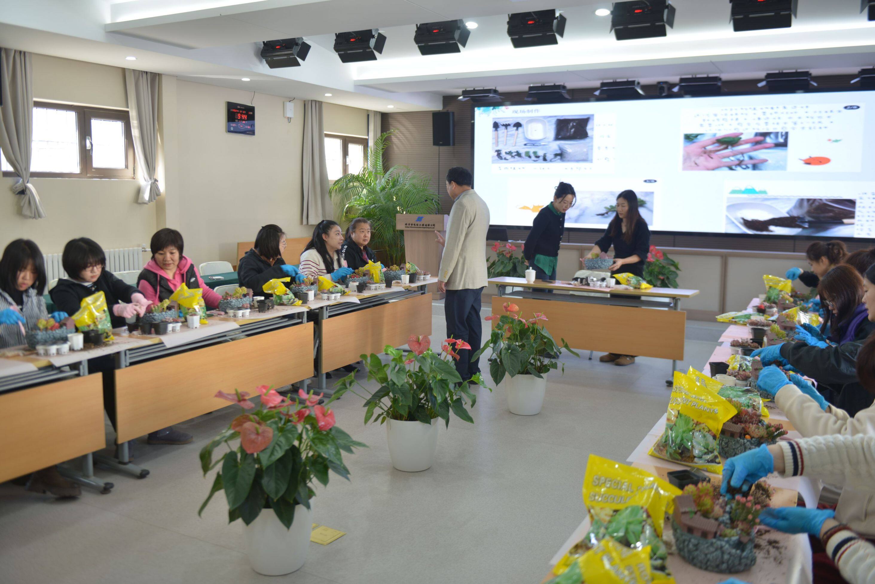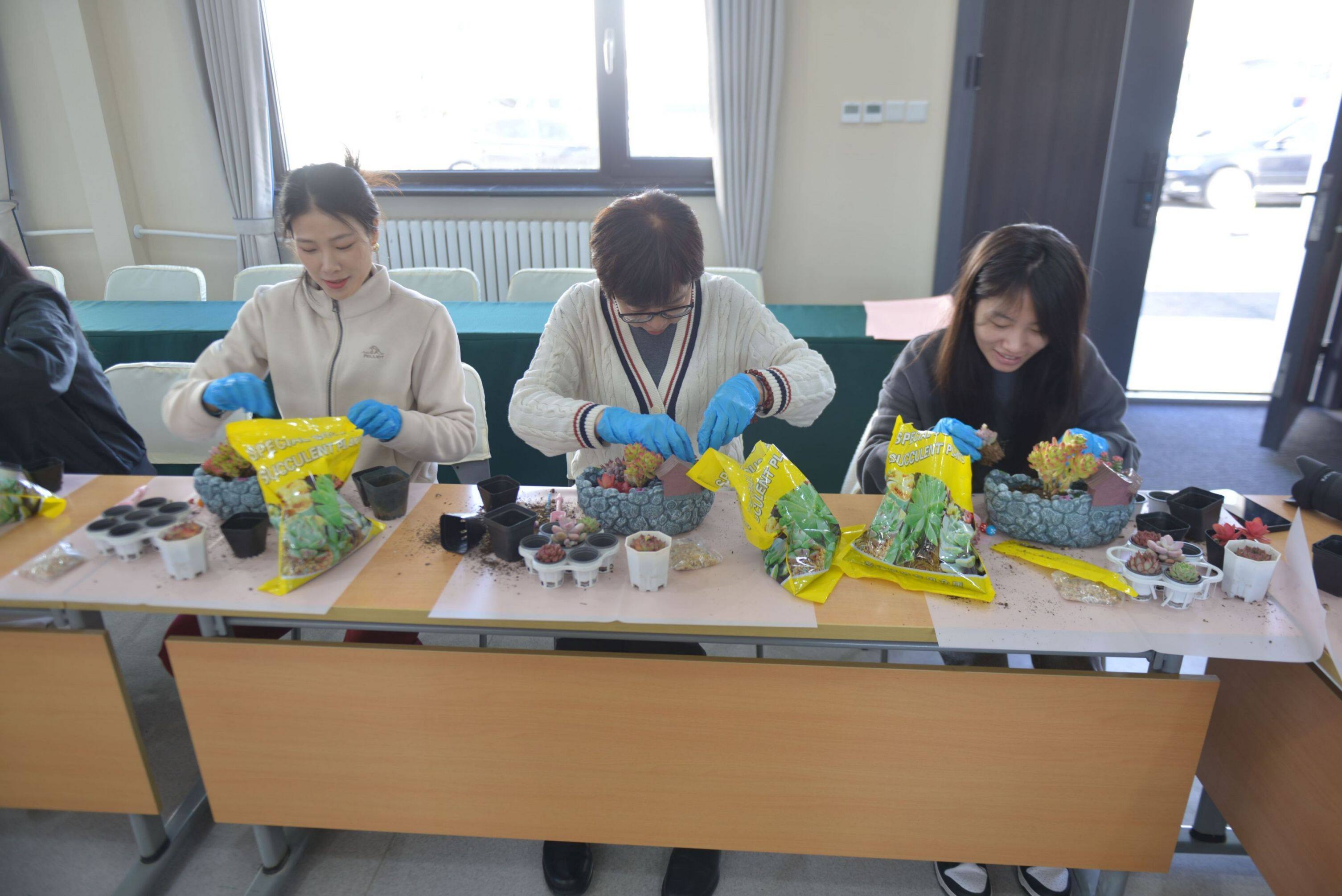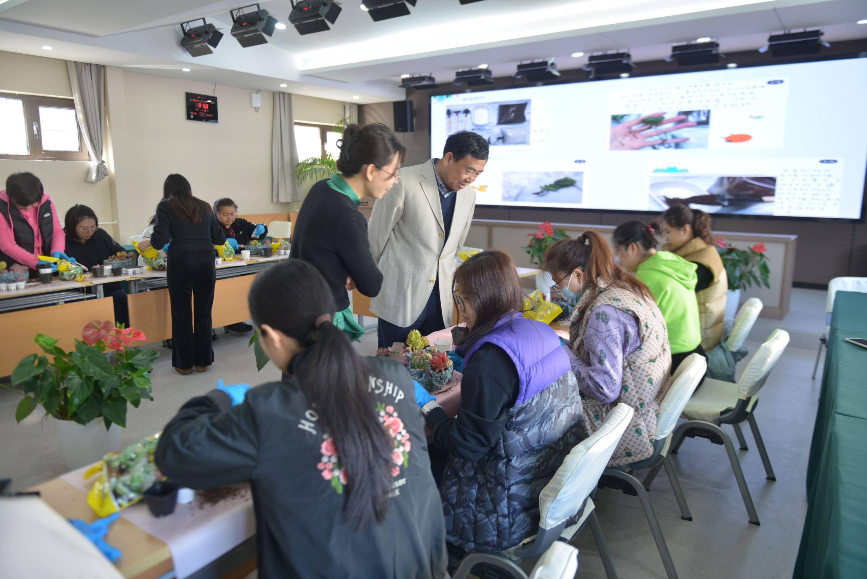 活動(dòng)現(xiàn)場(chǎng),專業(yè)老師詳細(xì)講解了多肉植物的相關(guān)知識(shí),包括多肉植物的種類、生長(zhǎng)習(xí)性、養(yǎng)護(hù)技巧等。女職工們聽得津津有味,對(duì)多肉植物有了更深入的了解。隨后,大家親自動(dòng)手積極參與到DIY過程中,制作屬于自己的多肉植物復(fù)古花園庭院。女職工們充分發(fā)揮創(chuàng)意,從挑選植物到設(shè)計(jì)布局,再到親手栽種和裝飾,打造出一座座充滿藝術(shù)感和生命力的花園庭院。