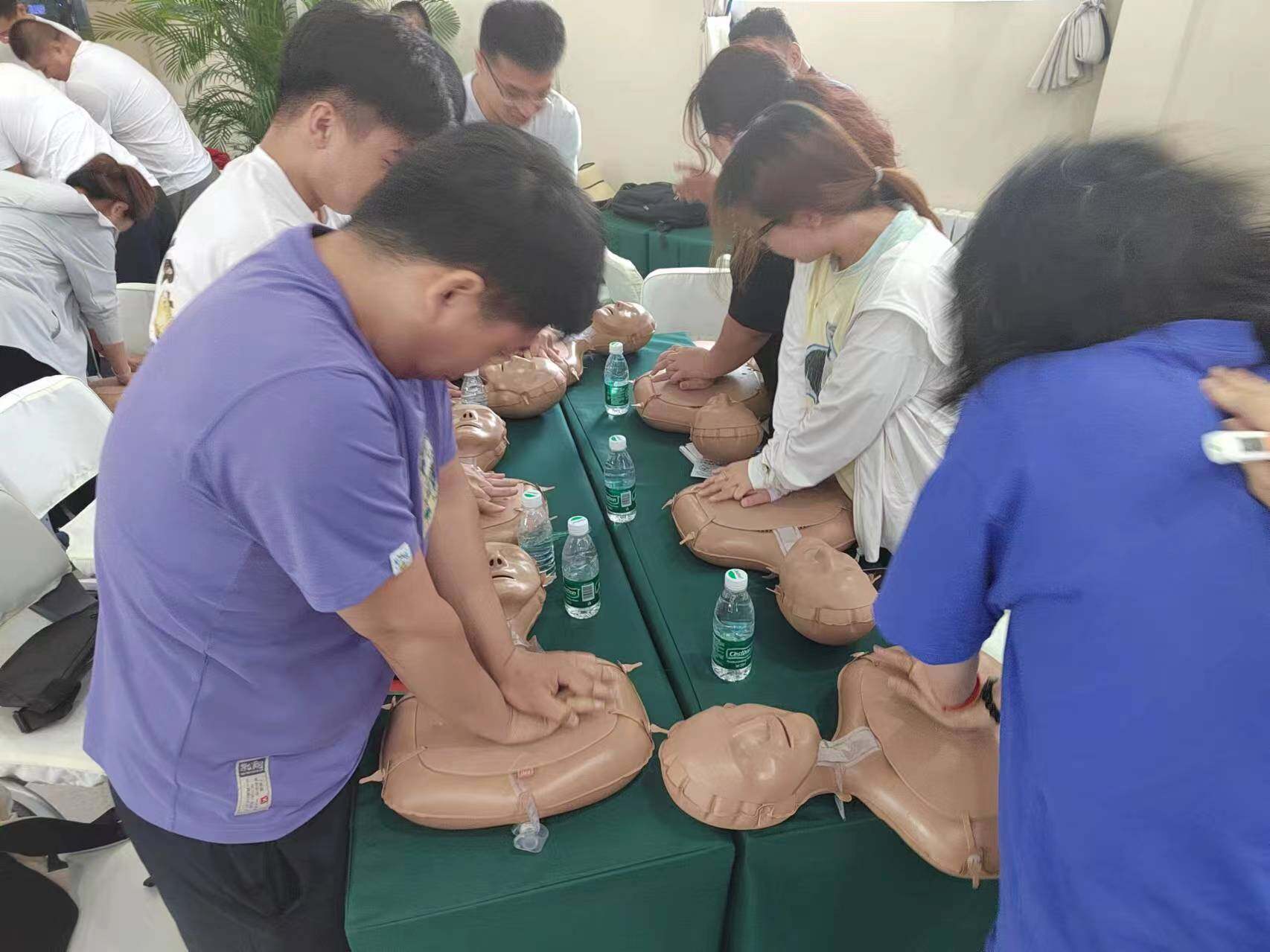 此次培訓邀請北京市豐臺區“紅十字會”的專家團隊親自授課講解和實操指導。對心臟驟停的識別判斷、心肺復蘇、止血包扎、骨折固定搬運等應急救援相關知識進行了詳細講解,并在此基礎上,利用大量時間指導學員進行練習,保證每個學員能學會能理解能操作。學員們個個聽課認真、練習用心,興致很高。在每一批次培訓后期,由豐臺區“紅十字會”的老師組織對每一個學員現場考核,現場公布成績,合格后方頒發合格證書。憑借專家精彩授課和學員們的用心練習,三個批次95個學員全部取得北京市紅十字會頒發的“救護員證”。